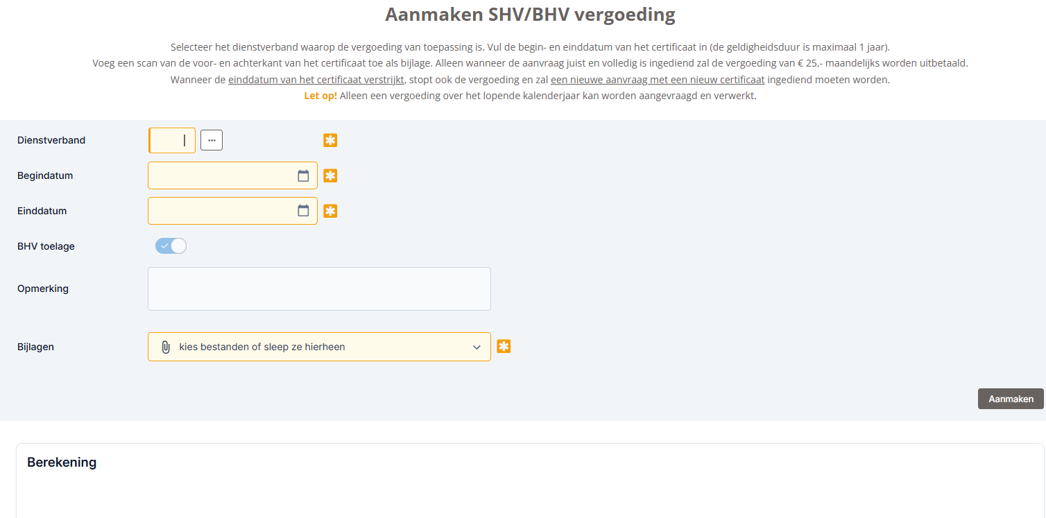 Het initiatief voor de BHV toelage ligt bij de medewerkers zelf. Zij zijn zelf verantwoordelijk voor het uploaden van een geldig certificaat (bij herhaling) en daarnaast ook voor het aanvragen van de toeslag. Het uploaden van het diploma/certificaat leidt niet automatisch tot uitbetaling van de toeslag. Dat staat ook heel duidelijk bij de workflow in Afas vermeldt.