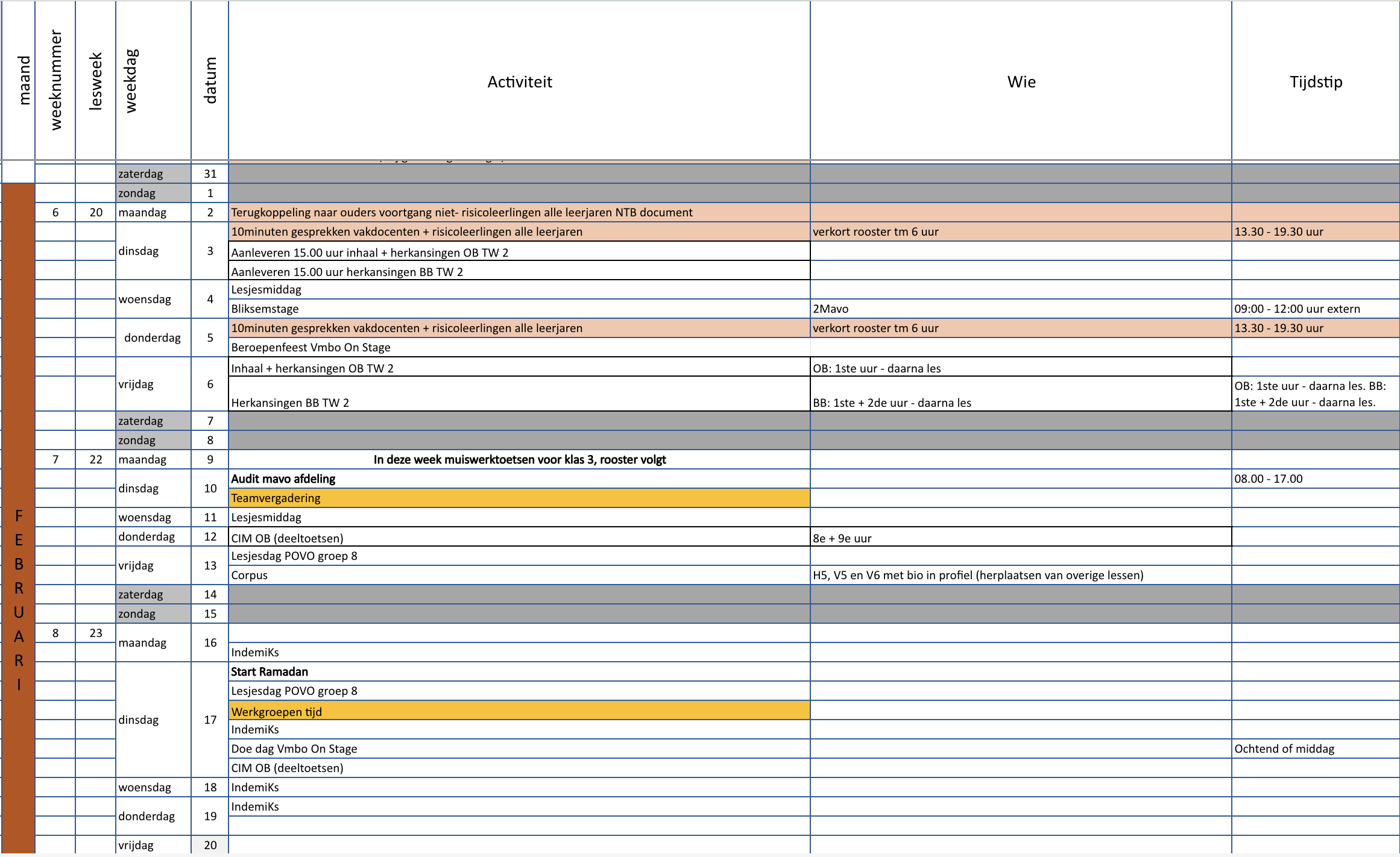 LET OP 2: De bovenbouw kan ervoor kiezen om een ingehaalde toets van toetsweek 1 te herkansen. Dit is in het document oranje gemaakt. Graag aandacht hiervoor opdat je de juiste toets klaarlegt.