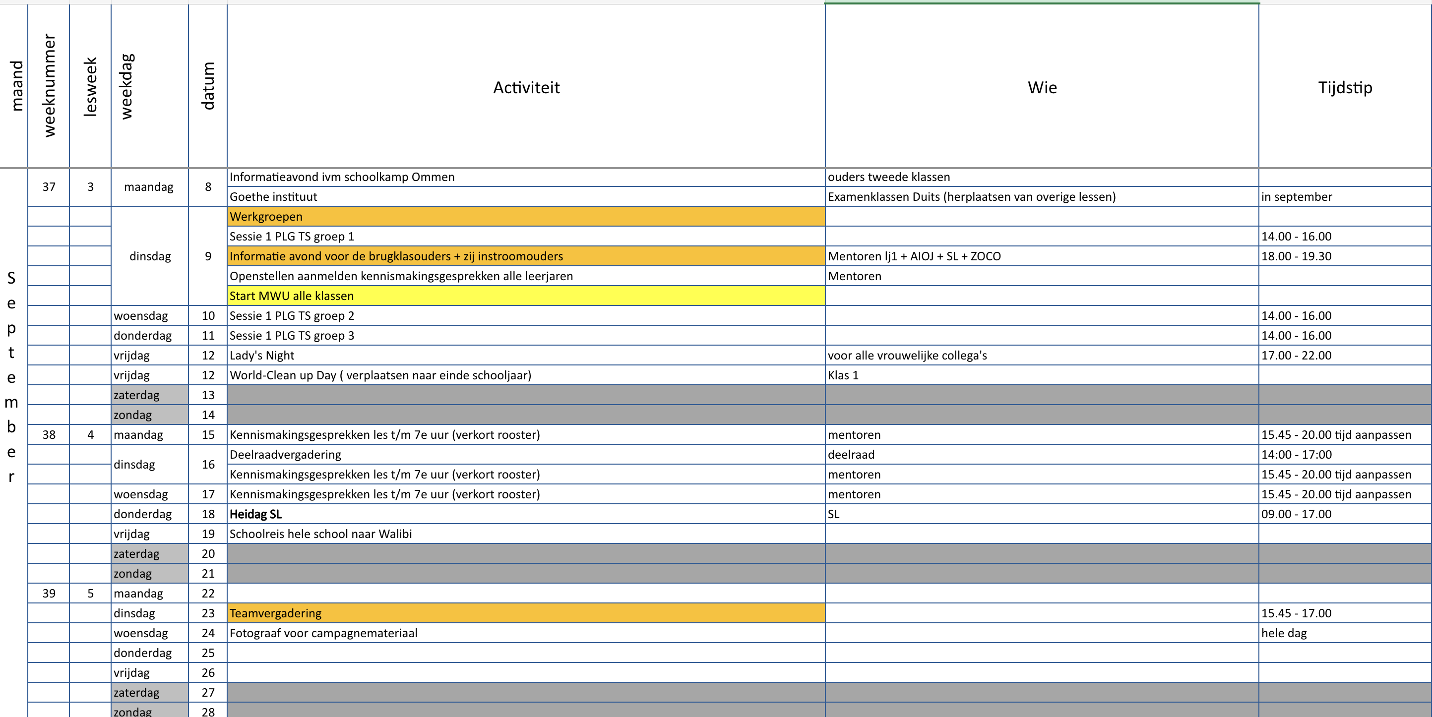 Nog één ding: het lokalenrooster is alleen voor vandaag opgepoetst. De rest van de week wordt vandaag opgepakt.