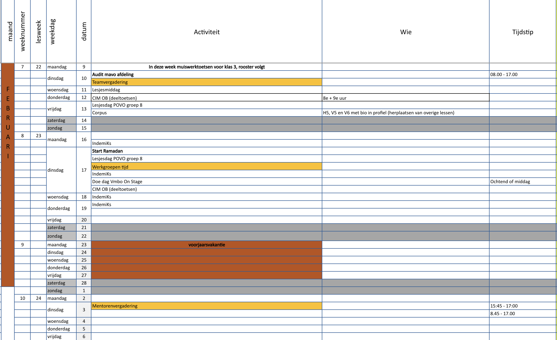 Zoals eerder aangekondigd vindt er dinsdag aanstaande een audit plaats. Een onderdeel van de audit zijn de lesbezoeken. Daarna volgen er diverse gesprekken met verschillende collega’s, ieder vanuit zijn of haar eigen rol.