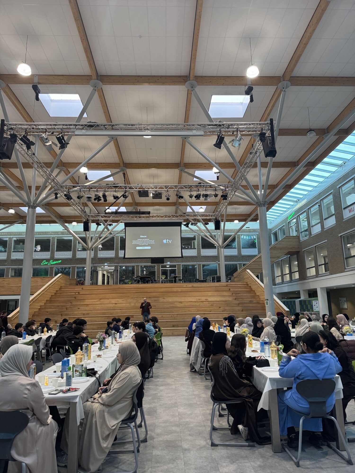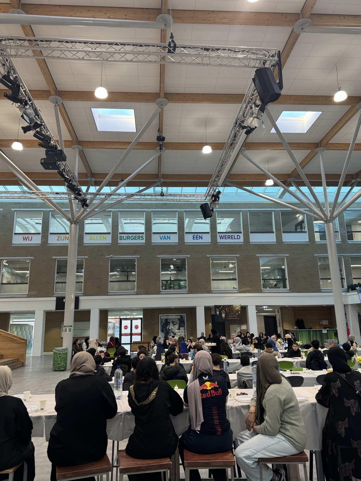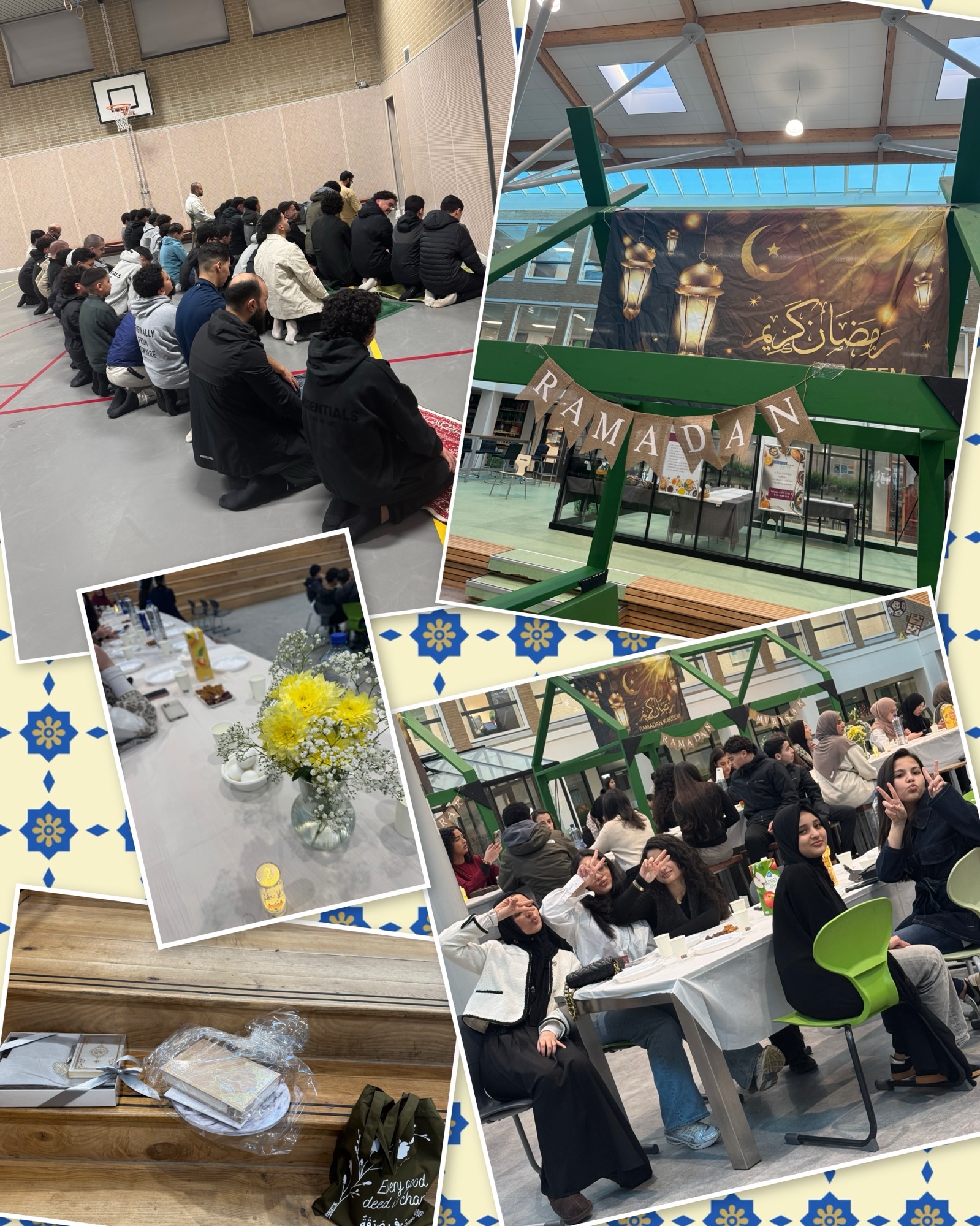 De iftar van dit schooljaar zit er alweer op. Dank aan de collega’s van de feestcommissie voor de organisatie en aan alle aanwezige collega’s. We hebben er samen weer iets moois van gemaakt. Leuk om te benoemen. Op hetzelfde moment werd er in het buurthuis ook een iftar georganiseerd met buurtbewoners. Ik ben daar even langs geweest en zij spraken de wens uit om dit volgend jaar gezamenlijk te organiseren. Wie weet!