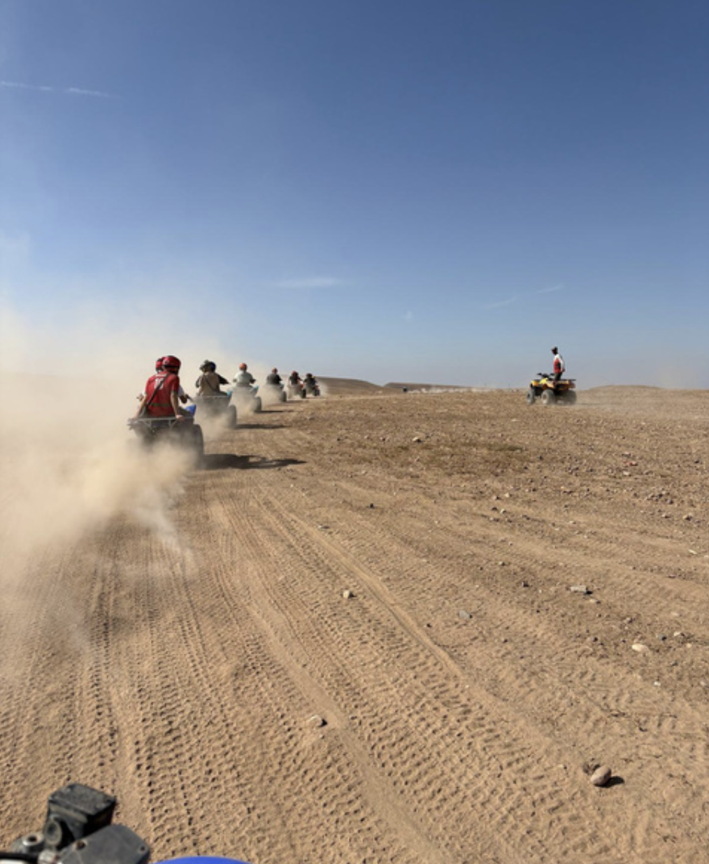 Een dag later hebben we onze reis vervolgd naar Essaouira, we kwamen hier in het einde van de middag aan. We hebben het stadje erg snel verkend, want de leerlingen stonden te popelen om even hun eigen gang te gaan. Ze hebben souvenirtjes gekocht, gegeten, over het strand gewandeld en in de avond uiteraard voetbal gekeken. De laatste dag mochten de leerlingen nog een activiteit uitkiezen, quad rijden, kameel rijden of surfen. Bijna de hele groep wilde quad rijden en met een klein clubje zijn we lekker op het strand gaan liggen. Helaas was de dag iets anders gelopen voor Ryhem, die haar vingers had gebroken… We hebben onze reis afgemaakt met nog een dagje Marrakesh om de laatste souvenirtjes te kopen en in de avond waren we te gast bij de nicht van Zaid. Heerlijk gegeten en ongelooflijk gastvrij ontvangen! Dat was een prachtige afsluiter van onze reis en we hebben ervan genoten!